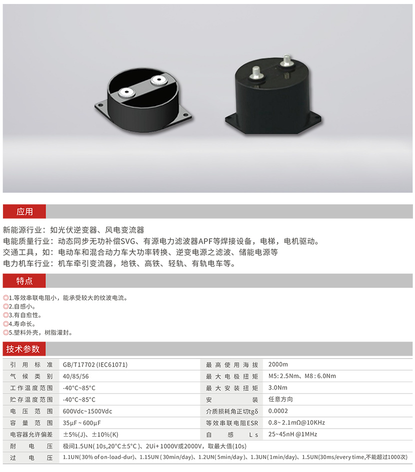 塑殼干式直流支撐濾波電容器